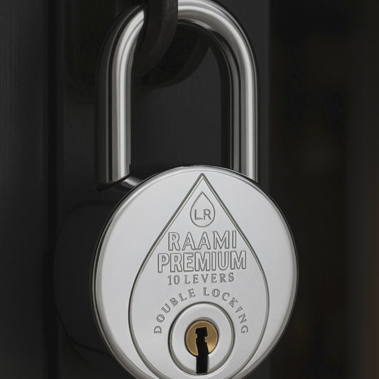 The Lr Raami® Padlock by NOBOLIFE — crafted with a 10-lever ultra-secure system, advanced tamper and bolt cutter resistance, and a rust-proof body that lasts for years. Its solid steel build and heavy-duty protection make it the ideal defense against theft and intrusion.